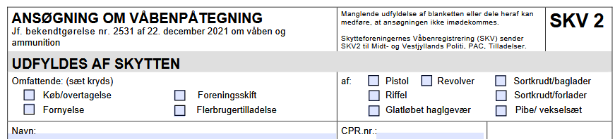 Vi har i bestyrelsen besluttet at genindføre gebyret til foreningen, når der ansøges om ny SKV2 og når eksisterende SKV2 skal fornyes.